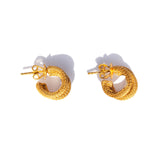 タイムレスなエレガンスを讃えたこのフープ ピアスは、すべて職人の手作業によってイエローゴールドを丁寧に編み込んでいます。