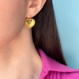 These dainty Daisy Heart Mirror earrings reflect soft golden light.