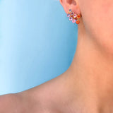 耳のラインに沿うように一列に並んだ、左右それぞれ異なる4つの色石。