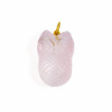 ローズクォーツを手掘りしたこの美しいフクロウは、チェーンとともに首元を美しく飾ります。