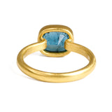The bezel setting incredibly enhances the brilliance of this indicolite tourmaline.