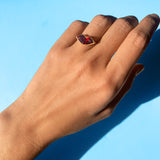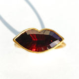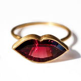 The garnet is hand-cut in order to give this mouth a pulpy relief.