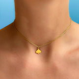 "スペード" ペンダントは、チェーンにつけて首元でお楽しみいただけます。